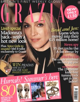 The latest edition of UK magazine Grazia (13 June 2005 issue) features Madonna on the cover and looks at her changing style over the years.