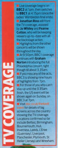 Live 8 to be released on DVD Posted: 29 June 2005 - From chartattack.com by Ashley Spegel