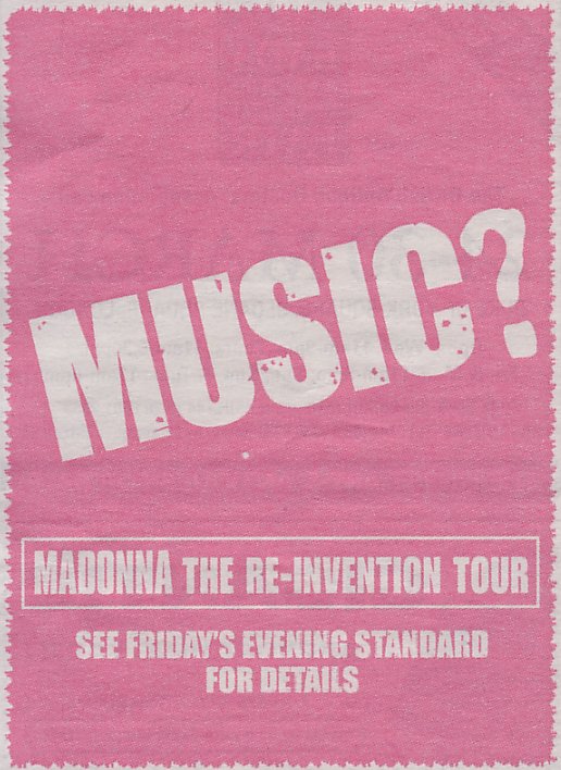 Tonight's edition of the London newspaper the Evening Standard featured this teaser advert for Madonna's re-Invention tour date at Wembley Arena.