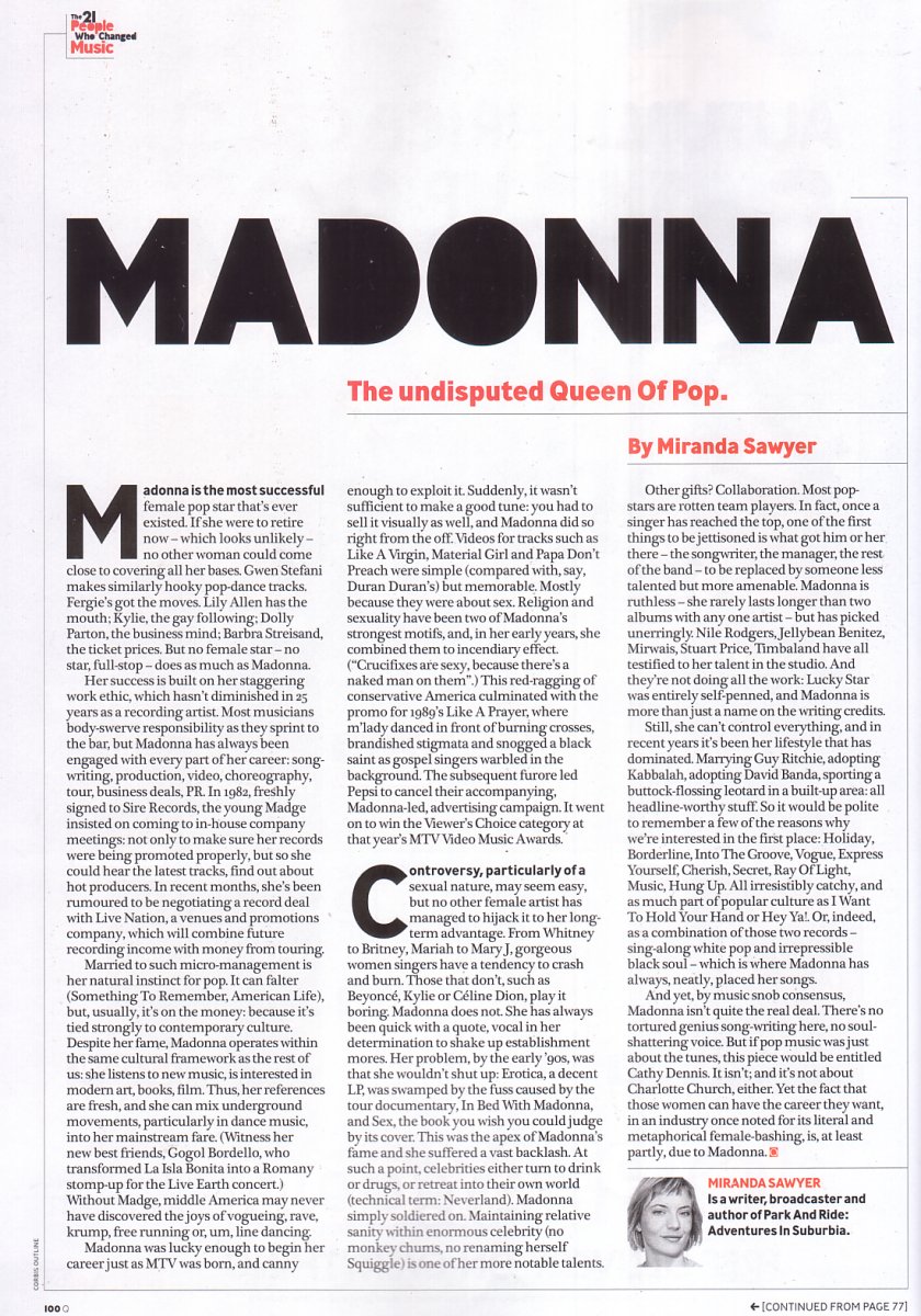 Madonna was featured in the list of the 50 most influential people in music in London, here is the piece written about Madonna:
